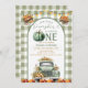 Fall Autumn Pumpkin 1st Birthday Green Truck Gingham String Lights Floral Invitation,