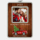 Watercolor Vintage Red Truck with Christmas Tree, Our First Christmas Couple Photo Ornament - Rustic Wood