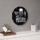 This edgy wall clock features a rebellious and bold statement for the no-nonsense trucker. Against a black background with a vibrant pink rim, it displays a skull wearing a trucker cap, smoking a cigar, and giving a defiant middle finger. The provocative text "TRUCK YOU! MOTHER TRUCKER!" makes it a fearless gift for a driver with a strong personality. The design tool can also be used to add custom text if you want your name or company on this clock. You can customise the colour of the frame to any colour you desire by going into the design tool.