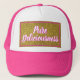 Show your cool with this pink trucker's hat with faux gold glitter that reads "pure delishousness". It's great for "bad hair" days. Customise it to make the words read what you wish.