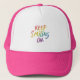 I totally love my hats. I love the designs,how the trucker hat fits, the product is amazing. And I can't stop buying them. Very well done, centered well.