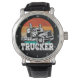 This stylish wall clock captures the essence of a truck driver's journey with a striking sunset motif. Against a black background with a teal rim, it features a semi-truck silhouette in black and white set against horizontal stripes of orange and yellow, evoking a scenic drive. The bold text "TRUCKER" proudly anchors the design. It's a perfect gift for any professional driver who appreciates the beauty of the open road. The design tool can also be used to add custom text if you want your name or company on this clock. You can customise the colour of the frame to any colour you desire by going into the design tool.