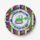 Personalised Blue, green, yellow, red cars, tractors, trucks and traffic sign boy's birthday party paper plates.