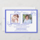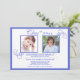 A classic blue and white invitation fit for a graduation celebration or any happy event. The white background features two photo windows with flourish swirls , framed in blue. The card is easy to customise with your wording, font, font colour and choice of six paper types.