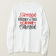 I love this shirt. I had written to the artist asking her if this picture was available on a shirt, and she wrote me back telling me where I could find the shirt. These shirts can be custom made to have a different saying. I loved this saying and went with it. The artist wrote me back later to tell me that she had seen my order go through. How's that for service? Pretty special. It's just as displayed. Perfect!