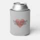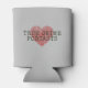 A can cooler for true crime podcast lovers everywhere, featuring a red fingerprint heart with typewriter style text.