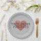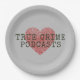 Paper party paltes for true crime podcast lovers everywhere, featuring a red fingerprint heart with typewriter style text.