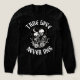 I love this shirt. I ordered the blend not just cotton. Medium fits me and I am 160 lbs. 5’6”- it’s a comfortable fit. I would say good quality also. I just ordered a short sleeve shirt- same logo for summer. I will be wearing both often. It did not shrink after washing and the dryer. .