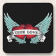 If it's true love, a plain old heart isn't gonna cut it. Two winged red hearts are joined by a banner spelling out "True Love". Add some rockabilly style and you've got a heart that'll rock your world. Available with matching products.