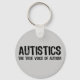 Autistics The True Voice of Autism. Simple text only autistic rights design. Black text on grey background. Autism activism keychain.