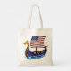 The perfect tote bag for Trump supporters in the upcoming 2020 elections. This fun and cute design features a Viking ship logo with the USA flag as the sail and the name 'TRUMP' on the vertical at the bow and the phrase: "Our American Viking Hero!" across the starboard.