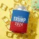 Vibrant and outspoken Trump 2024 with red and blue superhero style background and white text and stars. Show your support for the President Donald Trump campagn for re-election with this festive and fun paraphernalia.
