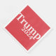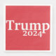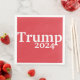 These Donald Trump presidential campaign party napkins feature a solid red background with the name "Trump" and election year "2024" printed in a white, regal font.