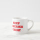 Trump Christmas espresso mug - Keep America Great. Funny cartoon with Santa hat. Republican party gift ideas. Add your own political text optionally.