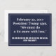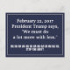 Design description: White text on a dark blue background with a light grey border. Customisable colours and fonts. Text 1 in large serif font: February 22, 2017 President Trump says, "We must do a lot more with less." Text 2, in bold condensed all caps san serif font: Ha ha ha ha ha ha ha ha ha ha ha ha ha. Stop the grift.