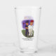 A drinking glass with a funny cartoon about Trump and his arrest. Original artwork by DBcartoons.
