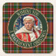 MAGA Christmas! A paper coaster in Royal Stuart Tartan plaid, adorned with a seal of approval: a festive Donald Trump wishing you a MAGAnificent Christmas!