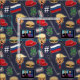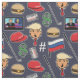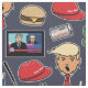 This political pattern covers many (but not all!) of the indulgences of President Trump's term in office – dollar signs, cheeseburgers, diet colas, golf, twitter and fake news cable TV. Russian flags and red hats float along with these things and Donald Trump's face to form a funny pattern any Never Trumper will snicker at. You can change the background colour by clicking the Customise button.