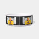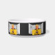 This is a heavy, durable bowl decorated with Tibbies of many colors, the perfect size for hungry/thirsty Tibs. The design is interesting and printing clear.