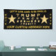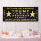 Add your custom message to this elegant black and gold Trump banner and hang it in the house, the man cave or at your next political meeting. The top line of text reads "Let's win and win bigly!" in gold coloured lettering with Trump Pence For America in the centre of this political banner. Each side of the banner has vertical text and a larger star, the left reading VOTE and the right 2016, completing this sign for Republican candidate for President, Mister Donald J. Trump.