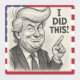 This sticker shows a man with flowing light hair grinning in a sly manner as he points to something with the sentence "I did this." The man looks very similar to President Donald Trump. One might use these to label something one is pleased about that the president has done, or to sarcastically label something he or she is displeased about. Have fun with these!