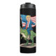 Trump Riding Dinosaur T Rex USA American Flag Thermal Tumbler
