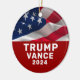Trump and Vance with patriotic American flag background.
