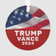 Trump and Vance with patriotic American flag background.