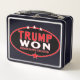 This is a standard metal lunchbox that appears to work just fine. We designed this box ourselves with an uploaded photo and custom text on the front and back. It looks absolutely beautiful except the front of the lunchbox is not centered like it shows in the photo. The print borders don't align with the inset flat part of the box where the preview photo online showed it perfectly centered in there. The back looks nice and centered though.
