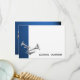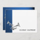 Dark Blue with Silver trumpets flat card thank you to compliment invitations.