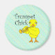 A cute yellow chick holding a trumpet is a funny gift design for brass musicians, music teachers and students in concert, jazz and marching band.