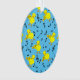 A jumble of black music notes and a cute yellow chick holding a trumpet against a blue background is a unique music design for brass musicians, music teachers and school students in concert, jazz and marching band.