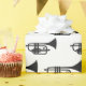 Wrapping Paper with illustration (silhouette) of musical instrument (Trumpet), jazz music black and white design,