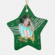 Trumpet star holiday photo ornament in green with silver music notes and photo ornament for your favourite musician. Personalise text on back as preferred.