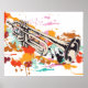 Trumpet music instrument custom print poster, featuring a trumpet on watercolor splash colourful background.