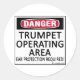 Danger, Trumpet Operating Area! Ear Protection Required! This gives them fair warning! See all our musical designs on on cups, mugs, tee shirts, sweatshirts, hats, and other gifts and clothing.