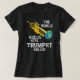 The world needs more trumpet solos in rough text with the image of the earth in the bell of the trumpet is a funny gift design for brass musicians, music teachers and students in concert, jazz and marching band.