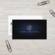This simple yet very elegant business card features a simple gold icon of trumpeter trumpet in a gold circle. Your name appears in matching colours and easy to read font below this icon. The background is jet black with a subtle blue glow in the centre of the card, behind the name and icon, giving the card a striking look. Perfect for music, entertainment, show business, musician, music instruments themes.