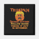 A “Trumpkin Inside Throw Out November” classic design. Political, satirical, and festive for election season.