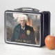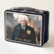 This is a standard metal lunchbox that appears to work just fine. We designed this box ourselves with an uploaded photo and custom text on the front and back. It looks absolutely beautiful except the front of the lunchbox is not centered like it shows in the photo. The print borders don't align with the inset flat part of the box where the preview photo online showed it perfectly centered in there. The back looks nice and centered though.