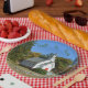 This paper plate features a quaint country church in Cornwall Connecticut with the message to trust in God.