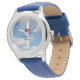 The blue band is the right color for a boys watch. My grandson loves lacrosse and the watch is easy to put on. He is ten years old. The lacrosse picture is very clear and I like the blue hands on the watch. It's good for teaching time.