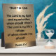 Beautiful photo of the summer sun shining over the ocean is featured on this tabletop plaque with easel. With message, "Trust In God, The Lord is my light and my salvation; whom should I fear? The Lord is my life's refuge; of whom should I be afraid?" Psalm 27:1 Makes a great gift for Birthdays, Encouragement or just to remind someone that God is with them always!