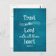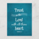 Trust in the Lord with all thine heart Bible Verse postcards. Beautiful deep aqua chic background with white font typography, featuring the inspirational, encouraging scripture from Proverbs. See all Christian Gifts and Bible Verse gifts at our store link below: (Christian+Quote)