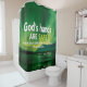 This is a modern TRUST IN THE LORD Christian Shower CurtAIN in shades of green. Stylish inspirational Christian church backdrop is based on PROVERBS 3:5-6, which starts 'Trust in the Lord with all your heart'. The main inspirational quote reads GOD'S HANDS ARE SAFE. The background image is of the Northern Lights. This Christian shower curtain would make a great addition to your bathroom decor, church manse or Christian gym shower room. Other popular Scripture verses are available. It would also make a great gift for Christmas and birthdays. Please contact me if you would like your church or company logo added. Choose from a wide selection of Christian designs on cards, home decor, clothing and gifts designed by Berean Designs.