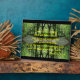 Inspirational Bible verse, Proverbs 3:5-6, "Trust in the Lord..." in yellow text on a photo manipulated background image of two paths in the woods with water reflections. The black strips at the top and bottom can be changed to a different colour, if desired.