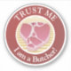 Trust me I am a Butcher written inside of a circle with a t-bone steak. Custom text.