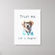 Embrace the charm of 'Trust Me I'm a Dogtor' - a delightful print that celebrates the love for our furry friends and the trust we place in veterinary care. This endearing design combines cuteness with professionalism, making it perfect for anyone in the field of veterinary medicine or those who simply adore dogs. Whether you're a future veterinarian, a seasoned practitioner, or a devoted dog lover, this print is a heartwarming addition to your space. Let it inspire trust, warmth, and a sense of caring in your clinic or home.
