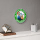 The clock did not take as long to arrive as I thought it might and was extremely well packaged. I didn't do the measurements so I didn't realize it is a little smaller than the average clock but that does not matter (just make sure you check if that's important to you).It is really nifty! It seems very solid and well made not flimsy at all. It has been going well and has kept good time in its few weeks on my wall. Nice product. Gets noticed too! Nicer in real life than the picture but true to the picture