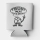 A graphic funny stickman with the text "Trust me I'm a Doctor-almost" on a can cooler. The background colour is customisable.